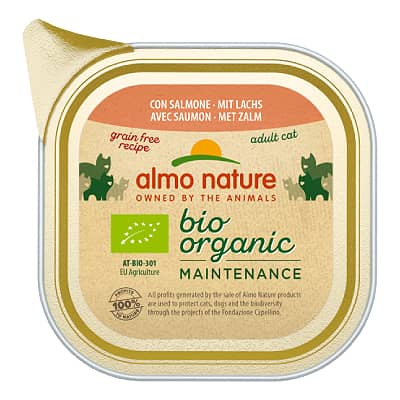 Palutini savu kaķi ar Almo Nature Bio Organic Salmon konserviem – bioloģiska, garšīga un sabalansēta maltīte. Pasūti Zoopasaule.lv ar ērtu piegādi!