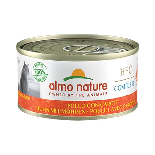 Almo Nature HFC Chicken & Carrot – dabiski sabalansēti konservi, kas nodrošina pilnvērtīgu uzturu jūsu kaķim ar kvalitatīvu dzīvnieku olbaltumvielu un šķiedrvielu avotu. Šī recepte apvieno sulīgu vistas gaļu ar svaigiem burkāniem, kas bagāti ar beta-karotīnu un antioksidantiem, lai stiprinātu imunitāti un uzlabotu gremošanu.