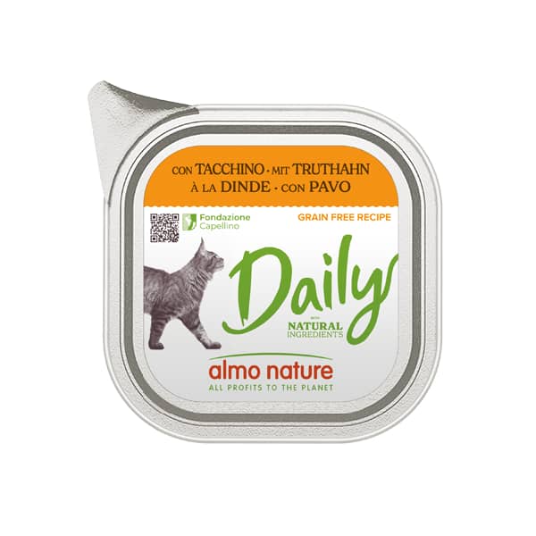 ALMO NATURE Daily Complete Grain Free konservi ar tītaru ir sabalansēta un garda papildbarība kaķiem, kas veidota no kvalitatīvām sastāvdaļām, bez ķīmiskām piedevām un graudaugiem. Ideāli piemērots ikdienas barošanai un kaķiem ar jutīgu gremošanu.