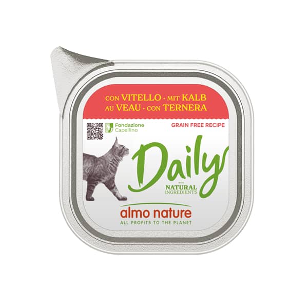 ALMO NATURE Daily Complete Grain Free konservi ar teļa gaļu ir sabalansēta un garda papildbarība kaķiem, kas gatavota no augstākās kvalitātes sastāvdaļām bez mākslīgiem konservantiem un krāsvielām. Šī recepte nesatur graudaugus, padarot to ideāli piemērotu jutīgiem kaķiem.