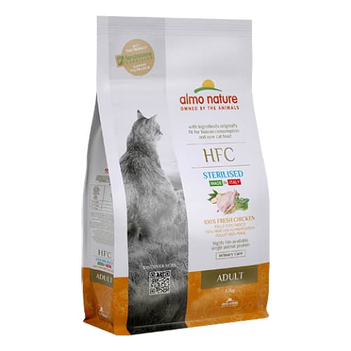 Pasūti Almo Nature Cat HFC Adult Sterilised Chicken 1.2kg jau šodien Zoopasaule.lv un nodrošini savam kaķim dabīgu, sabalansētu un urīnceļu veselību stiprinošu uzturu!