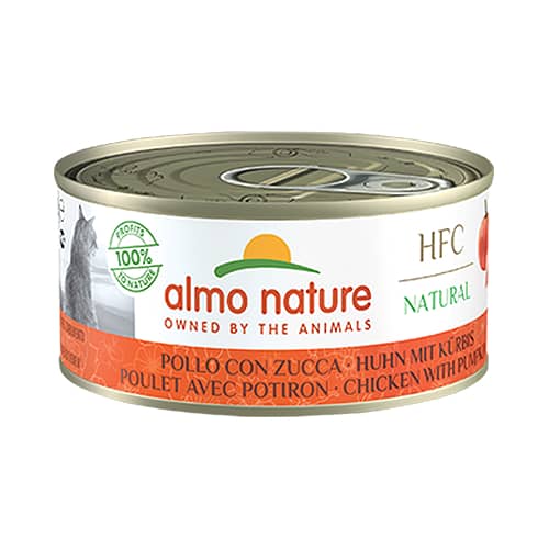Almo Nature HFC konservi ar vistas gaļu un ķirbi ir dabisks un veselīgs uztura risinājums kaķiem, kas apvieno viegli sagremojamu vistas gaļu ar šķiedrvielām bagātu ķirbi. Pagatavoti savā buljonā, tie palīdz uzturēt dabisko hidratāciju un nodrošina organismam nepieciešamās uzturvielas. Receptē izmantotas tikai HFC sastāvdaļas – cilvēku pārtikas kvalitātes produkti, kas sniedz garantiju par maksimālu kvalitāti un drošību.