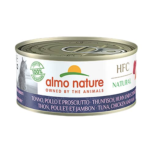 Almo Nature HFC Tuna, Chicken & Ham ir ekskluzīva mitrā barība pieaugušiem kaķiem, kas apvieno trīs izsmalcinātas sastāvdaļas – tunci, vistu un smalku šķiņķi. Tā nodrošina bagātīgu olbaltumvielu avotu un unikālu garšas pieredzi. Receptē izmantotas tikai 100% HFC sastāvdaļas, sākotnēji derīgas lietošanai pārtikā, tagad pielāgotas jūsu kaķa ikdienas uzturam.