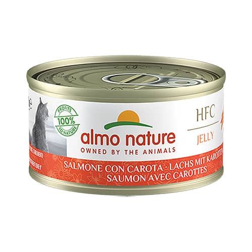 Almo Nature HFC Jelly Salmon & Carrot ir dabīga un sabalansēta barība kaķiem, kas gatavota no 100% HFC sastāvdaļām – cilvēku uzturam paredzētām zivīm un dārzeņiem. Šī recepte apvieno maiga laša gabaliņus ar burkāniem vieglā želejā, nodrošinot izcilu garšu, uzturvērtību un vieglu sagremošanu.