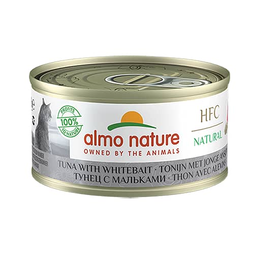 Dāvini savam kaķim dabisku un gardu uzturu ar Almo Nature HFC Tuna & Whitebait – īsts tuncis un mailītes vienā bundžiņā.