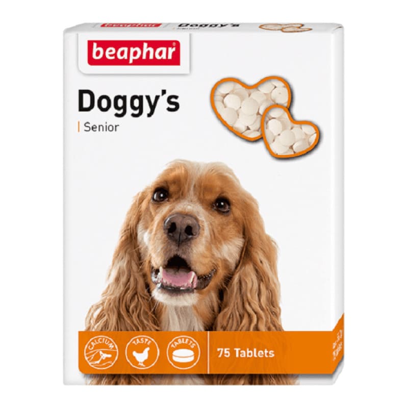 BEAPHAR DOGGY'S SENIOR ir minerālvielām bagāta papildbarība suņiem, kas vecāki par 7 gadiem. Šie veselīgie un gardie vitamīnu kārumi atbalsta kaulu un zobu veselību, veicina pareizu sirds darbību, muskuļu masas saglabāšanu un uzlabo apmatojuma izskatu. Pateicoties sabalansētajam sastāvam un viegli uzsūcamajam kalcijam, tie palīdz uzturēt suņa veselību un vitalitāti senioru vecumā.