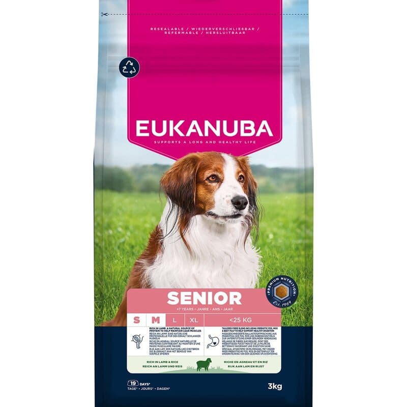 EUKANUBA Small & Medium Senior Lamb 3kg — uzticama izvēle senioru suņiem ar jutīgu gremošanu