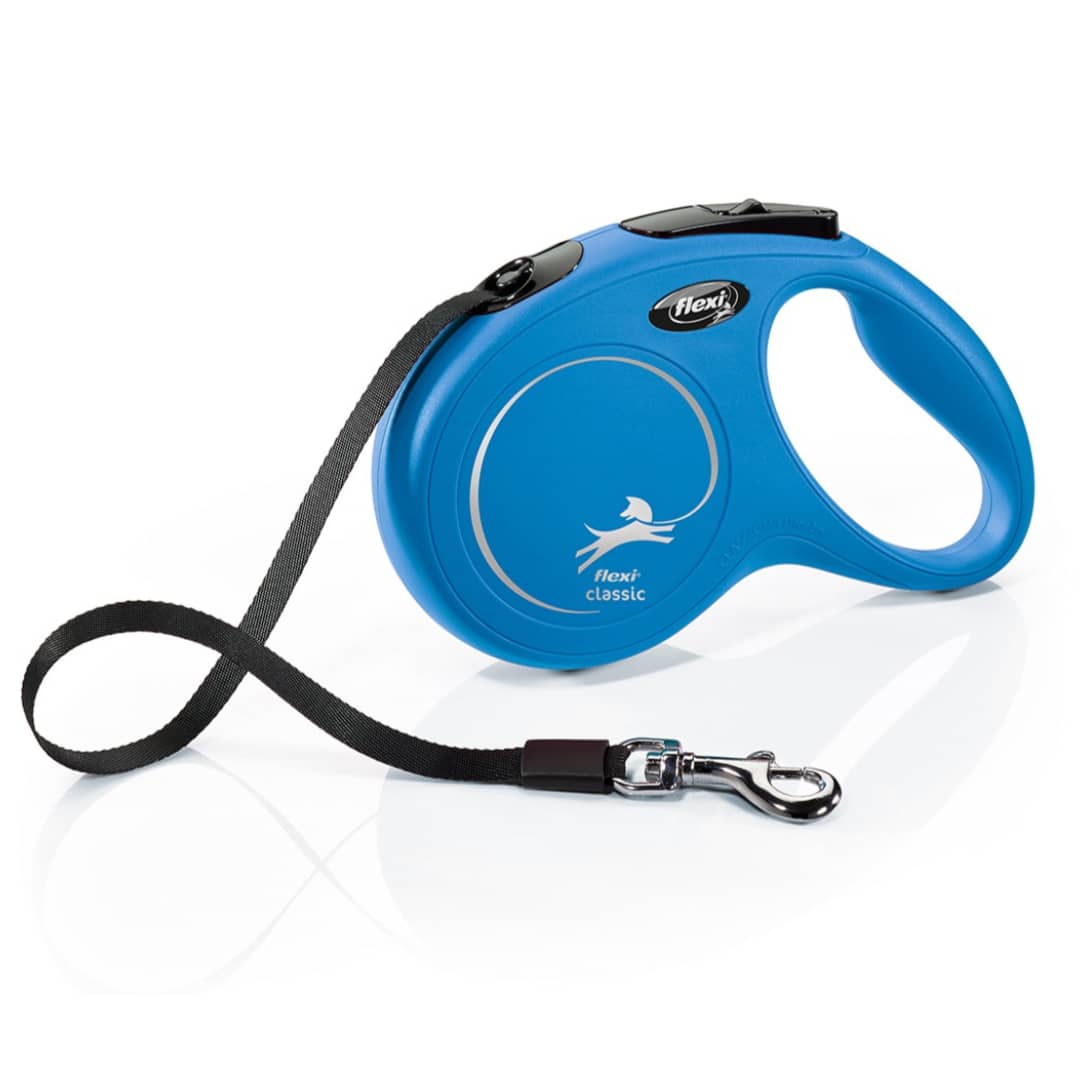 Pasūtiet FLEXI NEW CLASSIC M LENTE BLUE 5M Zoopasaule.lv un nodrošiniet savam sunim drošas un ērtas pastaigas!