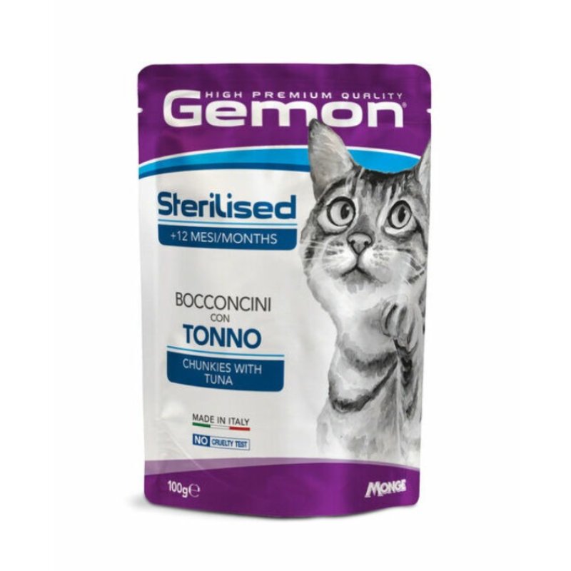 Sterilizētiem kaķiem nepieciešama sabalansēta barība, kas vienlaikus atbalsta veselību un palīdz uzturēt optimālu svaru. GEMON Cat Sterilised Tuna & Dory Chunkies ir pilnvērtīga un sabalansēta mitrā barība ar sulīgiem tunča un dori gabaliņiem želejā, kas piemērota kaķiem no 1 līdz 10 gadiem.