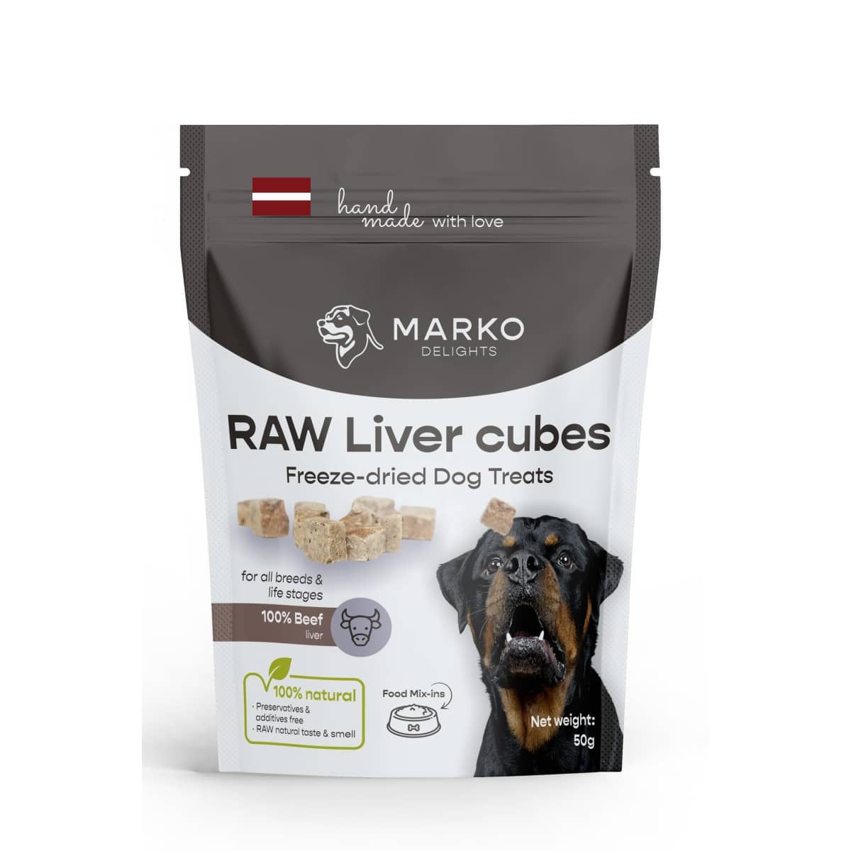Marko Delights Raw Liver Cubes liofilizēti gardumi suņiem no liellopa aknām 50 g