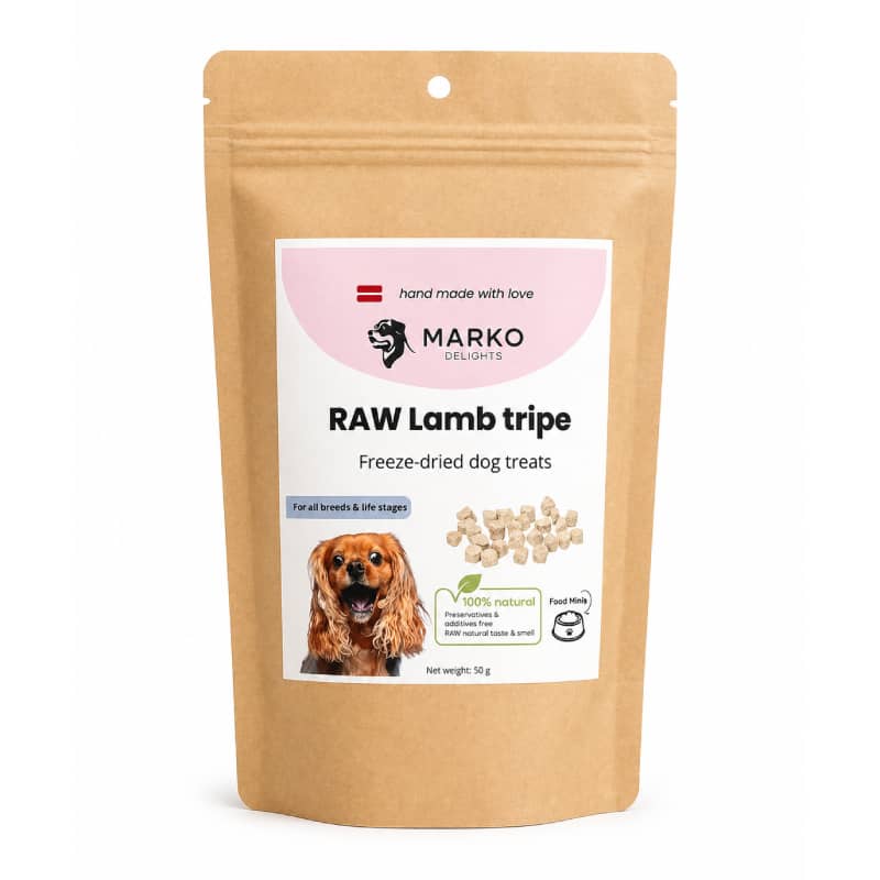 | Marko Delights Raw Lamb Tripe liofilizēti gardumi suņiem no jēra kuņģa 50 g | 1 gab. | 320000 | 5.50 € | [[product_22465]] |