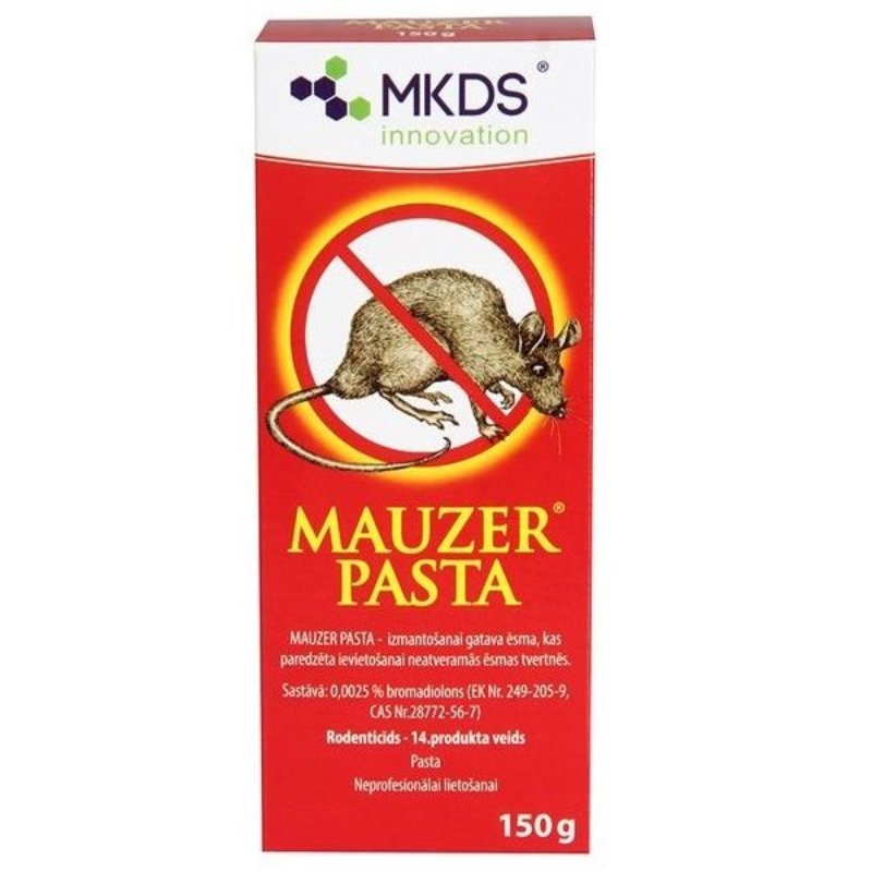 MAUZER PASTA ir gatava lietošanai peļu un žurku ēsma, kas nodrošina efektīvu grauzēju iznīcināšanu. Tā satur bromadiolonu (0.0025%), kas darbojas kā antikoagulants, izraisot grauzēju bojāeju dažu dienu laikā pēc ēsmas uzņemšanas.
