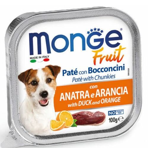 MONGE DOG FRUIT PATE DUCK konservi suņiem Pīle, apelsīni 100g