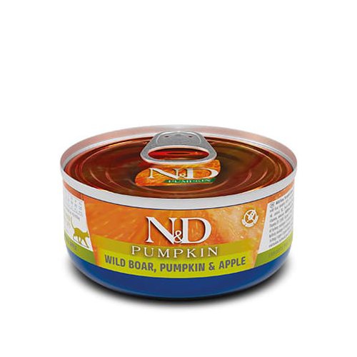 Farmina N&D Pumpkin Wild Boar ir bezgraudu, dabīga un sabalansēta mitrā barība kaķiem, kas apvieno mežacūkas gaļu, ķirbi un ābolus – trīs spēcīgas dabas sastāvdaļas, kas nodrošina pilnvērtīgu uzturu un izcilu garšu.