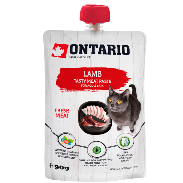 Pasūtiet ONTARIO CAT TASTY MEAT PASTE LAMB 90g Zoopasaule.lv un palutiniet savu kaķi ar garšīgu un veselīgu uzkodu!