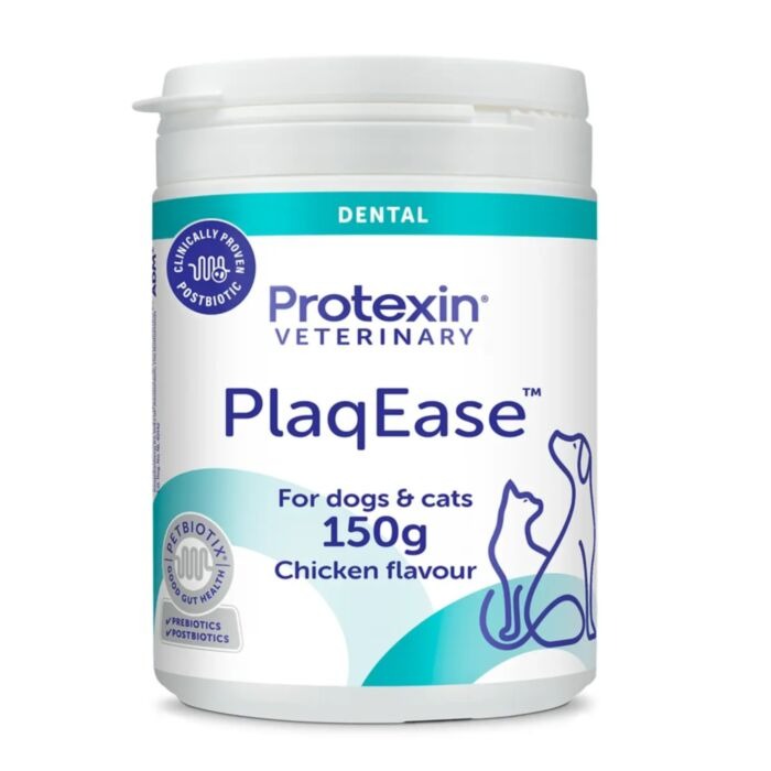 Rūpējies par sava mīluļa zobu veselību ar Protexin® PlaqEase™ 150g – dabīgu, zinātniski izstrādātu pulveri, kas palīdz samazināt aplikumu, stiprina smaganas un atsvaidzina elpu. Šī formula apvieno jūraszāļu miltus, postbiotiķus un C vitamīnu, kas kopā darbojas, lai uzturētu līdzsvarotu mikrofloru mutes dobumā un kavētu zobakmens veidošanos.