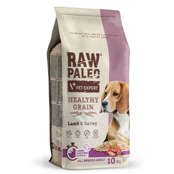 RAW PALEO Healthy Grain LAMB ir sabalansēta sausā barība, kas īpaši izstrādāta pieaugušiem suņiem. Tā pamatā ir kvalitatīva žāvēta jēra gaļa, papildināta ar kaltētu mājputnu gaļu, sniedzot augstu bioloģisko vērtību un izcilu garšu. Mieži ar zemu glikēmisko indeksu nodrošina ilgstošu enerģijas piegādi, savukārt batātes sniedz ātri izmantojamu enerģiju aktīvam dzīvesveidam.