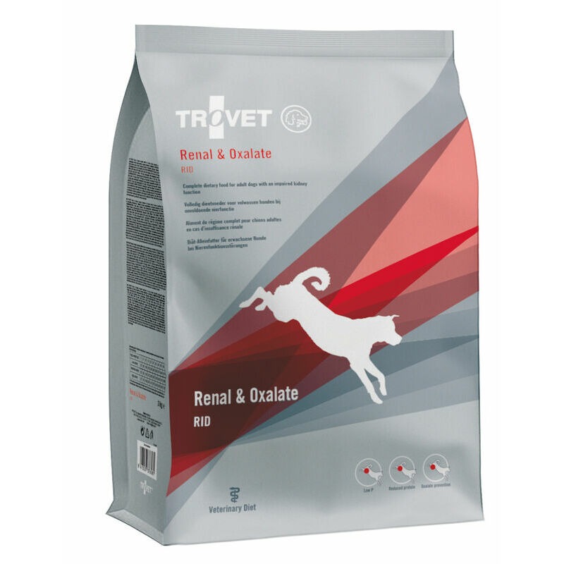 Pilnvērtīga diētiskā barība pieaugušiem suņiem ar hronisku nieru mazspēju vai tendenci veidot urātu, cistīna vai kalcija oksalāta urīnakmeņus. TROVET RID ir izstrādāta, lai palīdzētu samazināt nieru slodzi, uzturēt ūdens un elektrolītu līdzsvaru un samazināt oksalātu kristālu veidošanos, pateicoties samazinātam fosfora daudzumam, optimālai proteīnu kontrolei un kālija citrāta pievienošanai.
