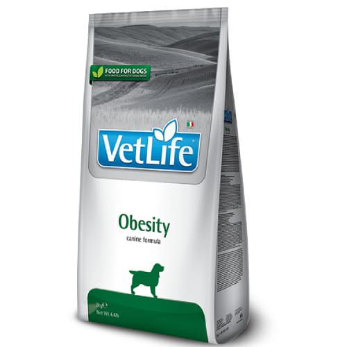 VET LIFE DOG OBESITY ir speciāli izstrādāta diētiskā sausā barība suņiem, kas palīdz samazināt lieko svaru un regulēt glikozes līmeni asinīs. Tā satur zemu kaloriju daudzumu, palielinātu šķiedrvielu daudzumu, kas nodrošina sāta sajūtu, kā arī augstas kvalitātes proteīnus un L-karnitīnu, lai saglabātu muskuļu masu svara samazināšanas laikā.